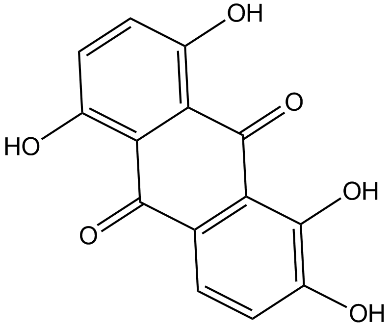 Quinalizarin 是一种有效、且具有选择性和细胞渗透性的蛋白激酶 CK2 抑制剂,Ki 大约为 50 nM,IC50 为 110 nM。