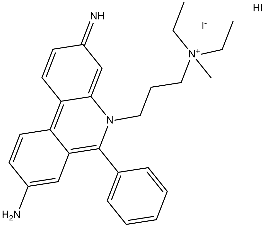 Propidium Iodide (PI) (solution) 是一种细胞核染色试剂,可染色 DNA。Propidium Iodide 是一种溴化乙啶的类似物,在嵌入双链 DNA 后释放红色荧光。